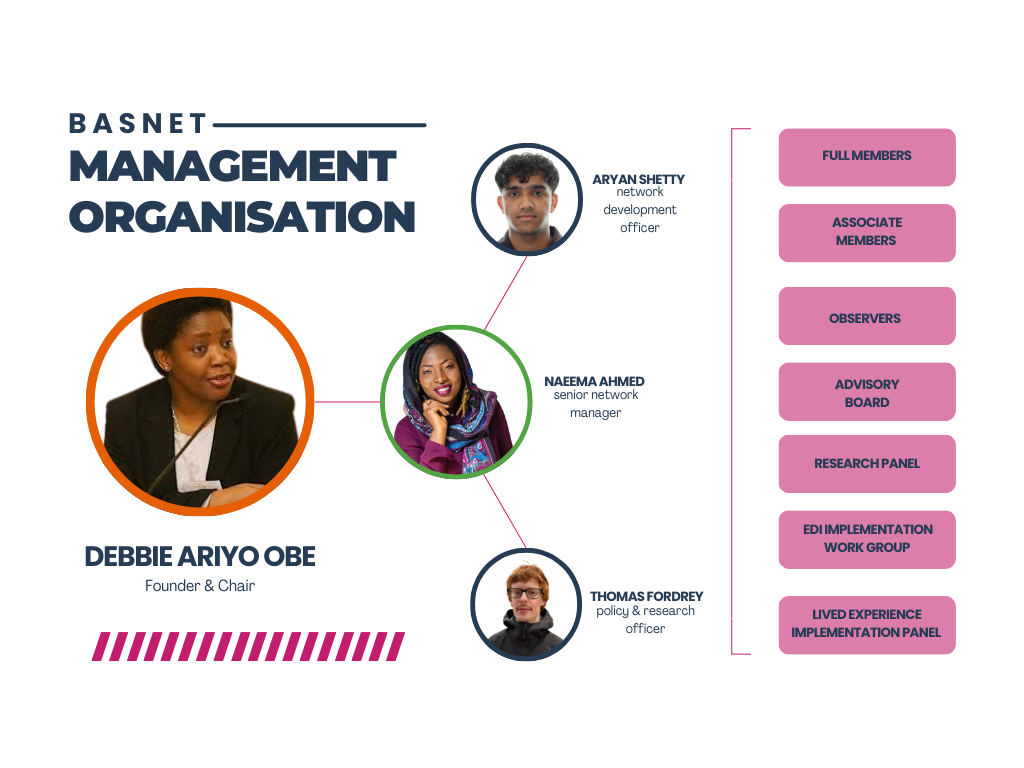 The UK BME Anti-Slavery Network (BASNET) promotes race equality, diversity and inclusion in the UK anti-trafficking and anti-slavery space. We are a collective of organisations working in different Black and Ethnic communities dedicated to combating modern slavery and human trafficking in the United Kingdom. Our mission is to foster collaboration, advocacy, and research to eradicate the heinous crimes of modern slavery and human trafficking and to ensure the protection and well-being of those affected.